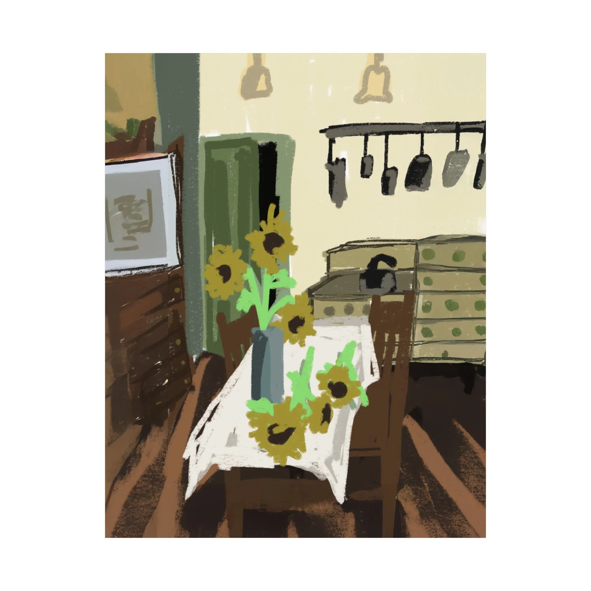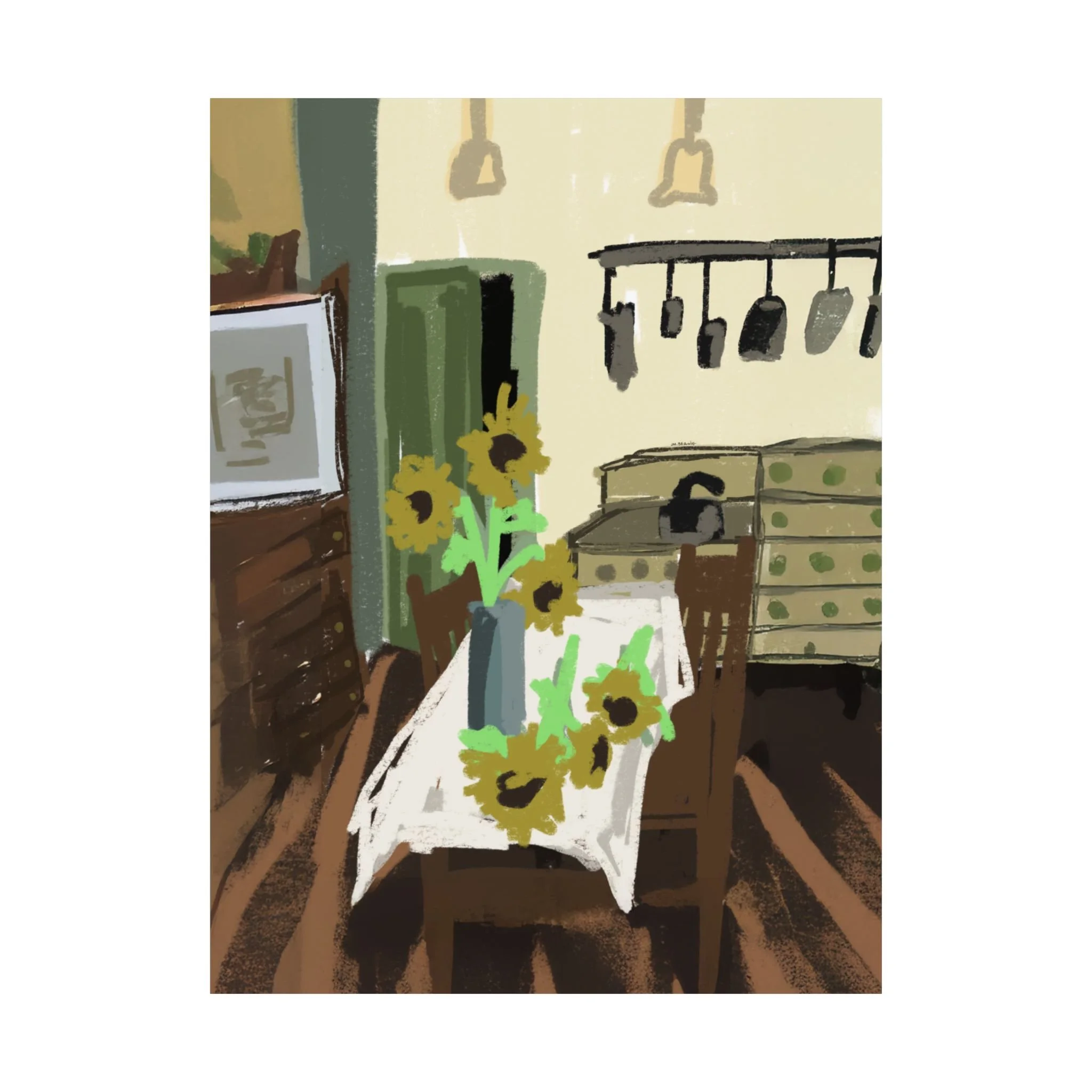 - Giclée print technology allows for bright, intense colors that resist fading.